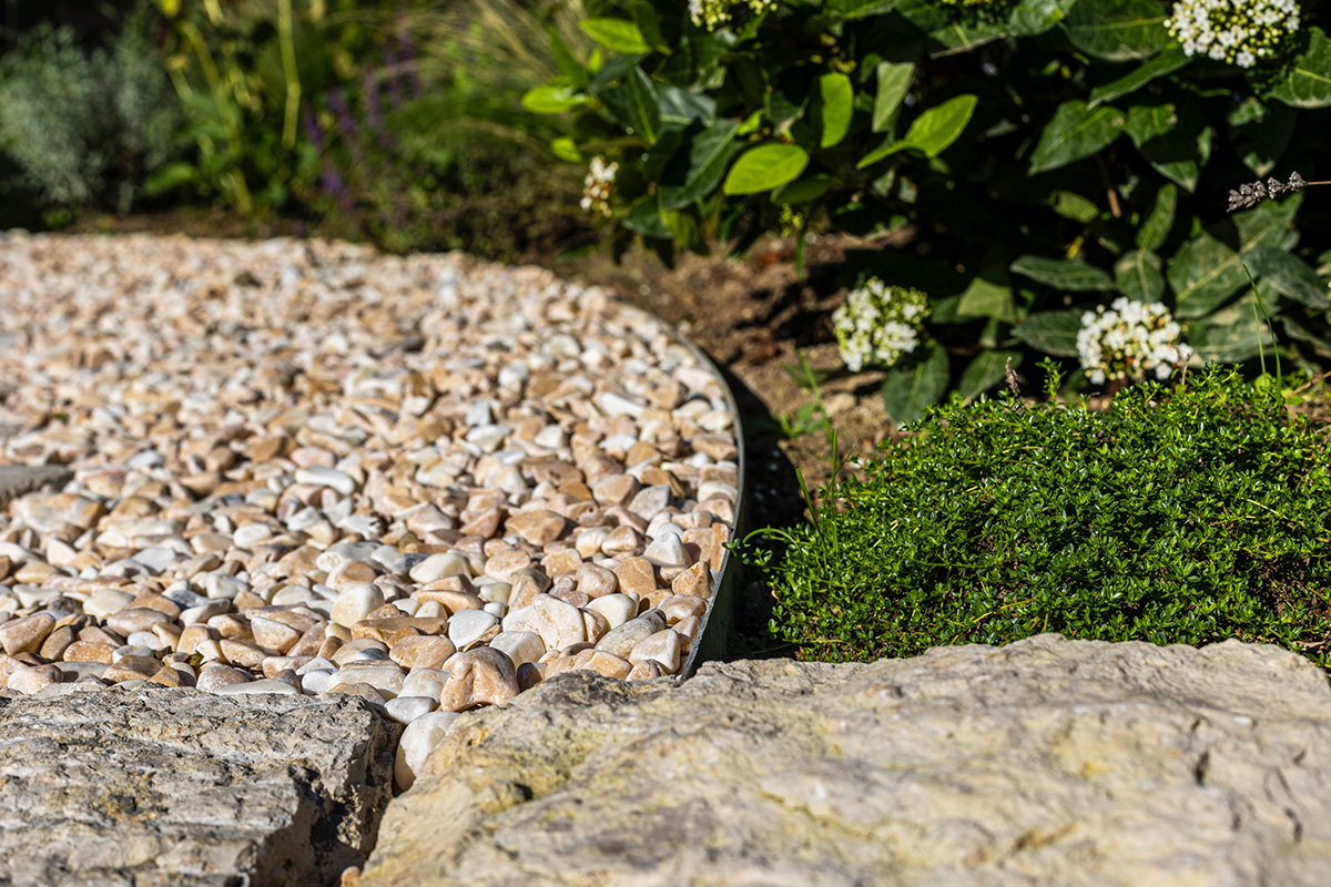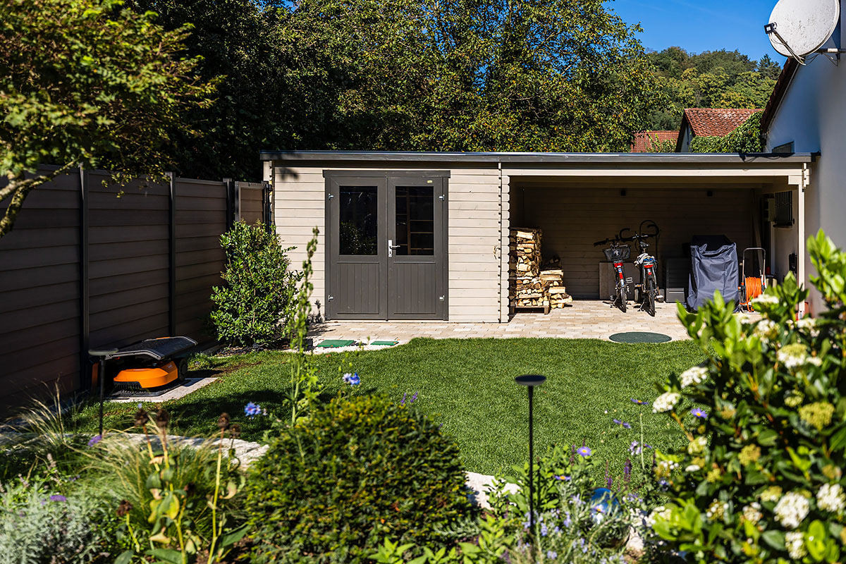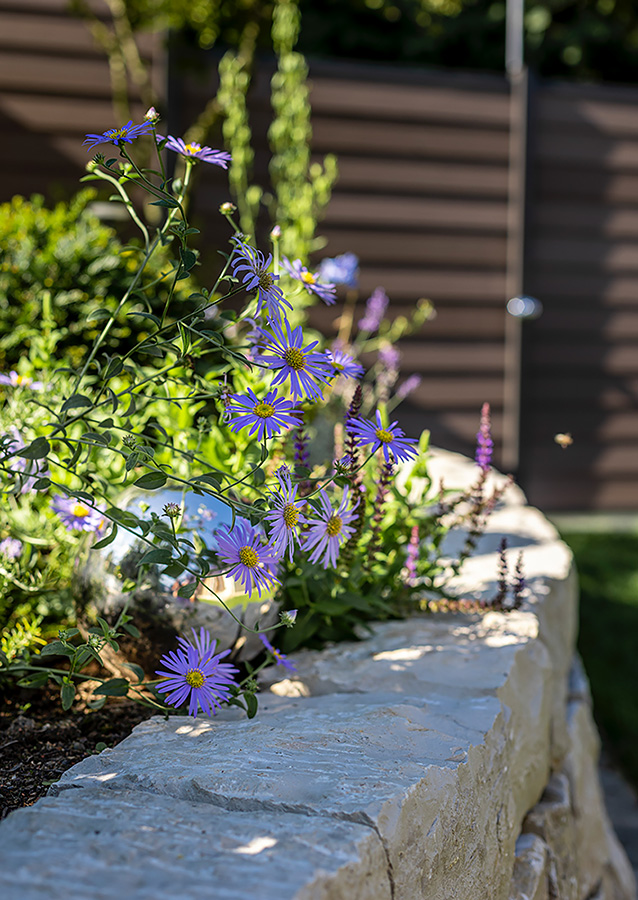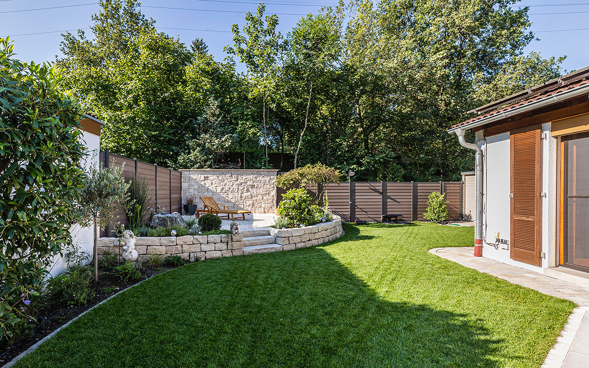 Nach einer umfassenden Beratung und Planung wurde im ersten Schritt dieser wunderschöne Garten mit Freisitz in 3D visualisiert. Der Startschuss folgte mit dem Go der Auftraggeber und das Team von bauLANDSCHAFT machte sich ans Werk. Grobe Erdarbeiten, präzise Feinmodellierung, Fundament anlegen und Beläge setzen. Das harte Gerüst steht. Jetzt geht es ans Grüne! Der Bepflanzungsplan wird umgesetzt und auch der Rasen, je nach Kundenwunsch, gesät oder verlegt. Der neue Garten ist fertig und sein Charakter ist von Anfang an wahrnehmbar. Sichtbar wird dieser beispielsweise durch die schöne Kurvenbildung und geraden Linien der Rasenkante, die das saftige und ebene Grün umrahmt oder durch die Kombination von Flächen mit unterschiedlichen Oberflächenstrukturen, die durch Pflanzen mit filigranem Blattwerk gebrochen werden und mit den dezenten Blütenakzenten das Ambiente lebendig machen.